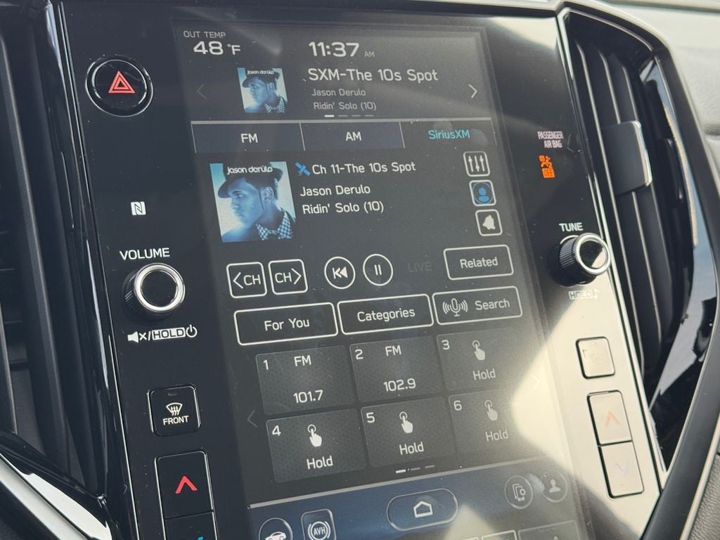 - Radio: Subaru 11.6" Multimedia Plus System -inc: AM/FM stereo HD Radio, multi-touch gesture high resolution display screen, voice activated controls, Bluetooth® audio streaming and hands-free phone connectivity w/SMS text messaging connectivity (refer to subaru.com for cell phone compatibility), iPod control capability, smartphone integration for Android Auto and Apple CarPlay w/full screen view and wireless connection, USB audio system update, audio system control switches, hands-free phone switches and voice command talk switch on steering wheel, 6 speakers, illuminated 3.5mm auxiliary input jack, illuminated USB A and C input/charge ports, SiriusXM w/360L (requires an active subscription: 4 months free trial included/subscription required after) and SiriusXM Travel Link (requires an active subscription: 4 months free trial included/subscription required after)