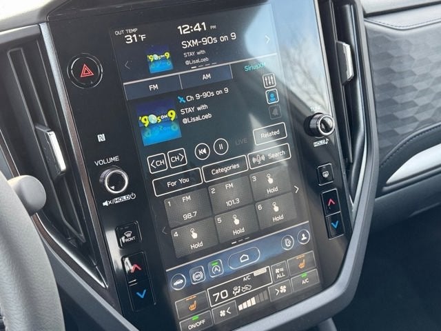 - Radio: Subaru 11.6" Multimedia Plus System -inc: valet mode, integrated center information display, AM/FM stereo HD Radio, multi-touch gesture high resolution display screen, voice activated controls, Bluetooth® audio streaming and hands-free phone connectivity w/SMS text messaging (refer to Subaru.com for cellphone compatibility), iPod control capability, smartphone integration: Android Auto and Apple CarPlay w/full screen view and wireless connection, SiriusXM satellite radio w/360L (free 4-month trial subscription included), USB and Over The Air (OTA) audio system update, steering wheel controls, 6 speakers, 3.5mm auxiliary input jack and roof mounted audio and satellite antenna