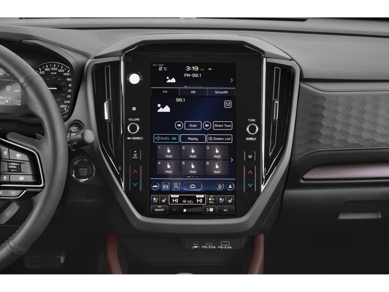 - Radio: Subaru 11.6" Multimedia Navigation System -inc: valet mode, integrated center information display, AM/FM stereo HD Radio, multi-touch gesture high resolution display screen, voice activated controls, voice activated navigation, Bluetooth® audio streaming and hands-free phone connectivity w/SMS text messaging (refer to Subaru.com for cellphone compatibility), TomTom navigation software w/what3words, iPod control capability, smartphone integration: Android Auto and Apple CarPlay w/full screen view and wireless connection, SiriusXM satellite radio w/360L (free 4-month trial subscription included), USB and Over The Air (OTA) audio system update, USB and Map Over The Air (MOTA) TomTom navigation system update (3 years free map updates), steering wheel controls, harman/Kardon speaker system w/11 speakers and 576 watt equivalent maximum output amplifier, 3.5mm auxiliary input jack and roof mounted audio, satellite antenna and SiriusXM Travel Link (4 months free trial included/subscription required after)