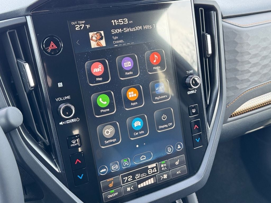 - Radio: Subaru 11.6" Multimedia Plus System -inc: valet mode, integrated center information display, AM/FM stereo HD Radio, multi-touch gesture high resolution display screen, voice activated controls, Bluetooth® audio streaming and hands-free phone connectivity w/SMS text messaging (refer to Subaru.com for cellphone compatibility), iPod control capability, smartphone integration: Android Auto and Apple CarPlay w/full screen view and wireless connection, SiriusXM satellite radio w/360L (free 4-month trial subscription included), USB and Over The Air (OTA) audio system update, steering wheel controls, 6 speakers, 3.5mm auxiliary input jack and roof mounted audio and satellite antenna