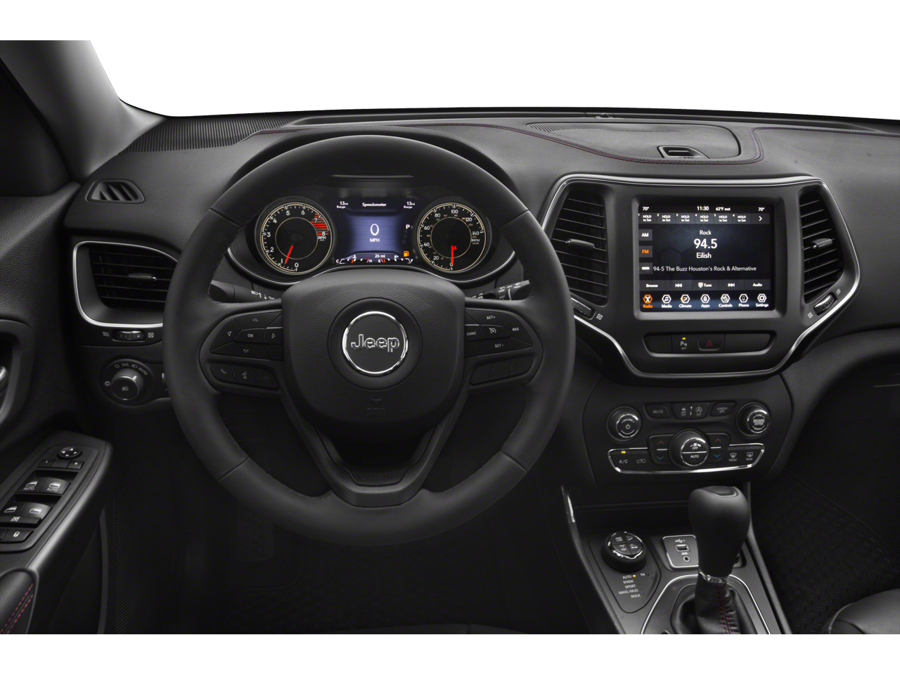 Inside, the Cherokee Trailhawk offers seating for five with durable cloth upholstery and supportive front seats. Standard equipment typically includes dual-zone automatic climate control, an intuitive infotainment system with touchscreen display, Apple CarPlay and Android Auto compatibility, a rearview camera, and multiple USB ports. Trailhawk-specific interior touches and optional upgrades such as a premium audio system and navigation further enhance comfort and convenience for daily driving and longer journeys.