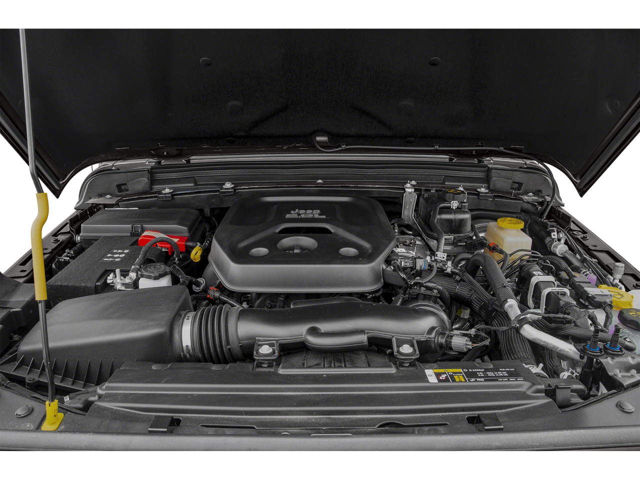 TRANSMISSION: 8-SPEED AUTOMATIC (850RE) TIP Start, Hill Descent Control, BLACK 3-PIECE HARD TOP Freedom Panel Storage Bag, Rear Window Defroster, Rear Window Wiper/Washer, No Soft Top, ENGINE: 2.0L I4 DOHC DI TURBO ETORQUE 600 Amp Maintenance Free Battery, 48V Belt Starter Generator, Delete Alternator, GVWR: 5,500 lbs.