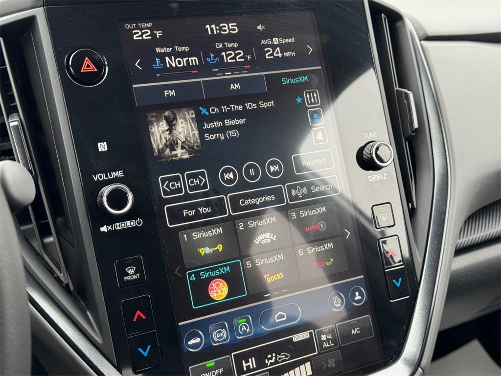 - Radio: Subaru 11.6" Multimedia Plus System -inc: AM/FM stereo, HD Radio, multi-touch gesture high resolution display screen, voice activated controls, Bluetooth® audio streaming and hands-free phone connectivity, Bluetooth® hands-free SMS text messaging connectivity, iPod control capability, SiriusXM w/360L (4 months free trial included/subscription required after), SiriusXM Travel Link (4 months free trial included/subscription required after), smartphone integration: Android Auto and Apple CarPlay w/full screen view and wireless connection, USB and Over The Air (OTA) audio system update, steering wheel audio system and Bluetooth® control switches, 6 speakers (2 dash panel tweeter, 2 front door and 2 rear door), illuminated 3.5mm auxiliary input jack, illuminated front USB A and C input/charge ports and illuminated rear USB A and C charge ports