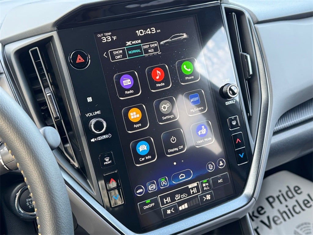 - Radio: Subaru 11.6" Multimedia Plus System -inc: AM/FM stereo, HD Radio, multi-touch gesture high resolution display screen, voice activated controls, Bluetooth® audio streaming and hands-free phone connectivity, Bluetooth® hands-free SMS text messaging connectivity, iPod control capability, SiriusXM w/360L (4 months free trial included/subscription required after), SiriusXM Travel Link (4 months free trial included/subscription required after), smartphone integration: Android Auto and Apple CarPlay w/full screen view and wireless connection, USB and Over The Air (OTA) audio system update, steering wheel audio system and Bluetooth® control switches, 6 speakers (2 dash panel tweeter, 2 front door and 2 rear door), illuminated 3.5mm auxiliary input jack, illuminated front USB A and C input/charge ports and illuminated rear USB A and C charge ports