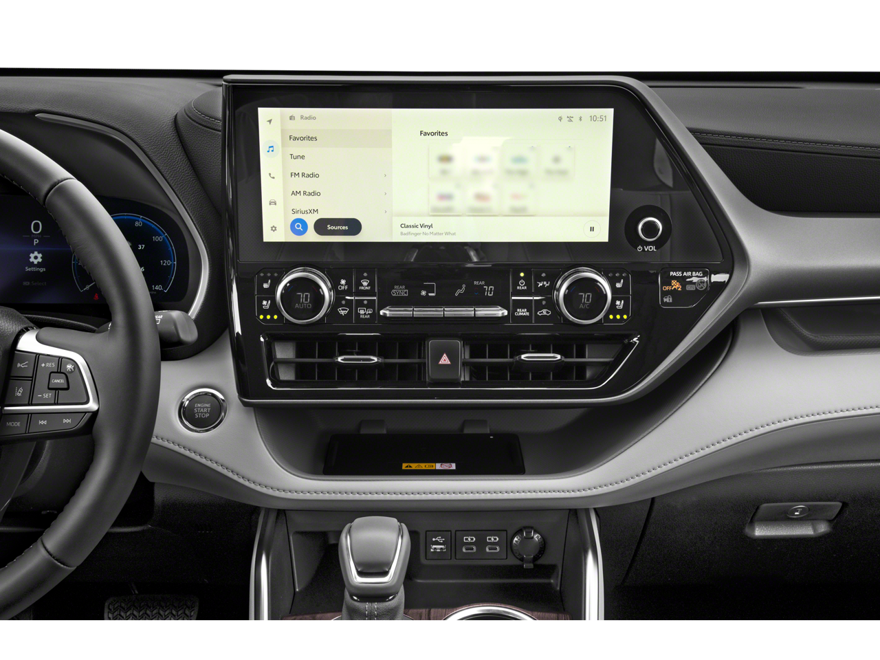 - Radio: 12.3" Toyota Audio Multimedia w/JBL Premium -inc: 11-speaker audio including subwoofer and amplifier, wireless Apple CarPlay and Android Auto compatibility, USB media port, 4 USB charge ports, hands-free phone capability and music streaming via Bluetooth® wireless technology, SiriusXM w/3-month trial subscription and Wi-Fi Connect including AT&T Wi-Fi hotspot w/up to 30-day or 3 GB trial subscription (whichever comes first) and integrated streaming (Apple Music and Amazon Music) compatibility, Subscription required after trial, 4G network dependent, See toyota.com/connected-services for details